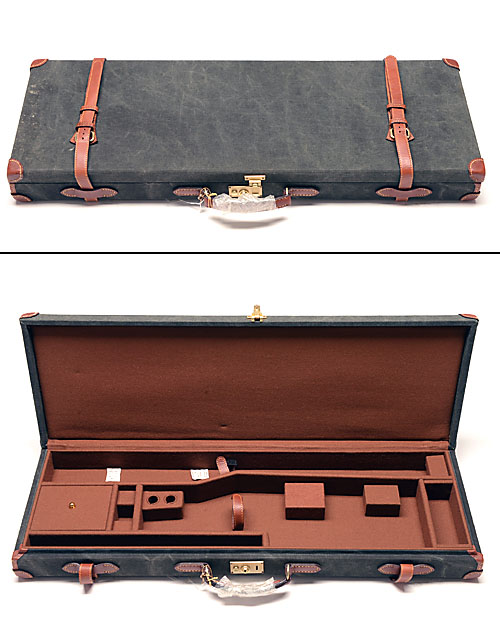 A VIRTUALLY UNUSED CANVAS & LEATHER DOUBLE OVER & UNDER GUNCASE,