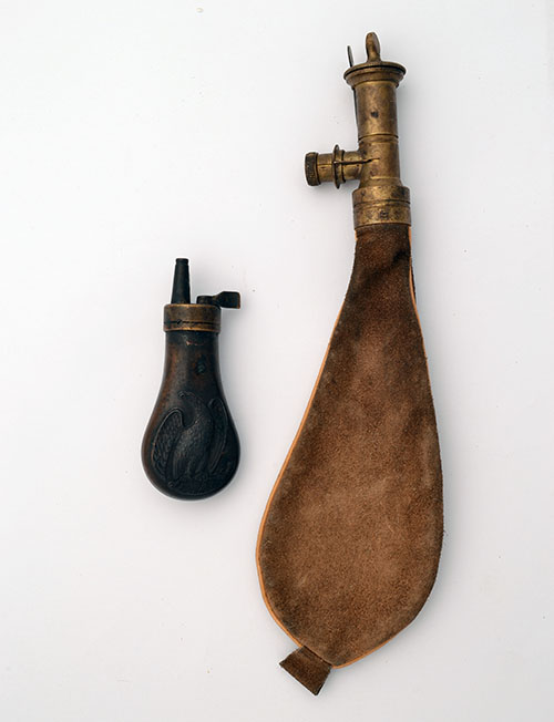 A REPRODUCTION PISTOL FLASK & IRISH SHOT FLASK