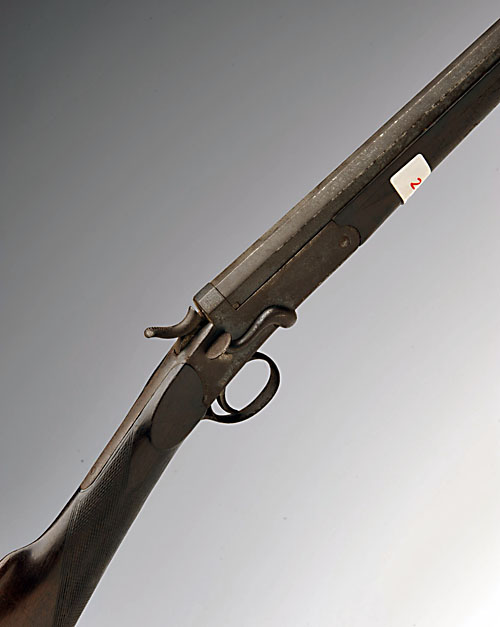 the second with 27 1/2in. nitro barrel (pitted, loose), 2 1/2in. chamber, bored approx. true cyl. 14in. stock, missing folding button (2)