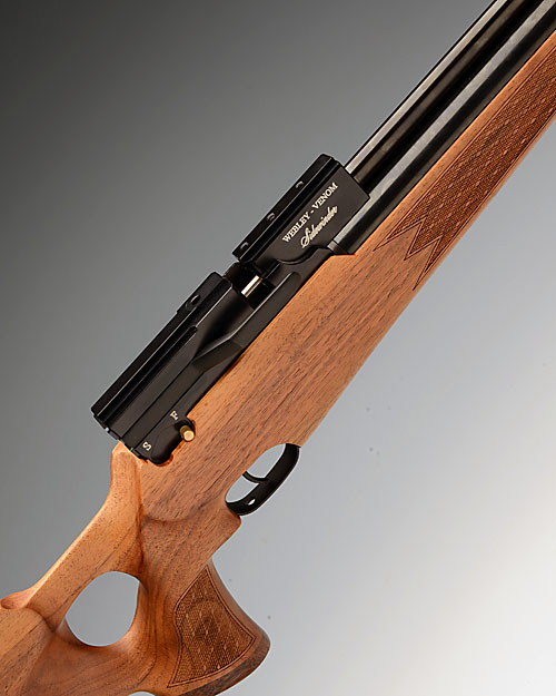 A .22 PRE-CHARGED PNEUMATIC REPEATING AIR-RIFLE SIGNED WEBLEY-VENOM, MODEL 'SIDEWINDER', serial no. 0209011129, for 2009, with 21 1/2in. floating barrel including muzzle-weight, side-lever cocking action (magazine missing), and custom walnut 'Venom' thumbhole chequered stock