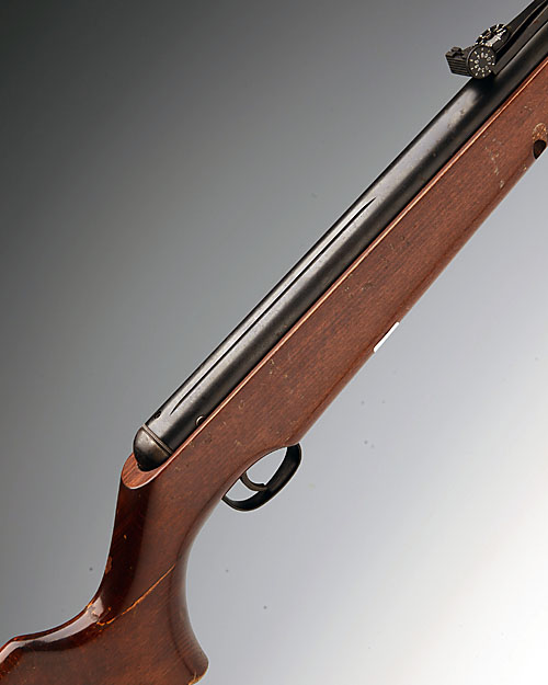 A .177 BREAK-BARREL SPRING-PISTON AIR-RIFLE SIGNED WEBLEY, MODEL 'XOCET', serial no. 891407, circa 1998, with sighted 17 1/2in. barrel (bent slightly upwards), plain blued air-chamber and beech-stock (cracked and repaired at hand)