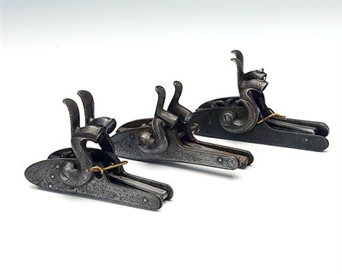 THREE PAIRS OF GOOD QUALITY HAMMERGUN FRONT ACTION LOCKS, J.W. PARKHOUSE', 'WILLIAM POWELL', 'P. HAST'