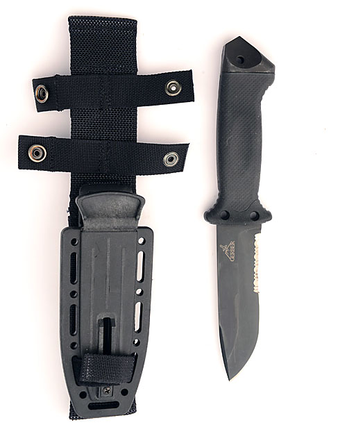 A GERBER LMF II INFANTRY KNIFE, with a 5 in. black stainless steel drop point serrated blade, textured softgrip handle together with a durable tactical sheath , all contained in manufacturers carton (1)