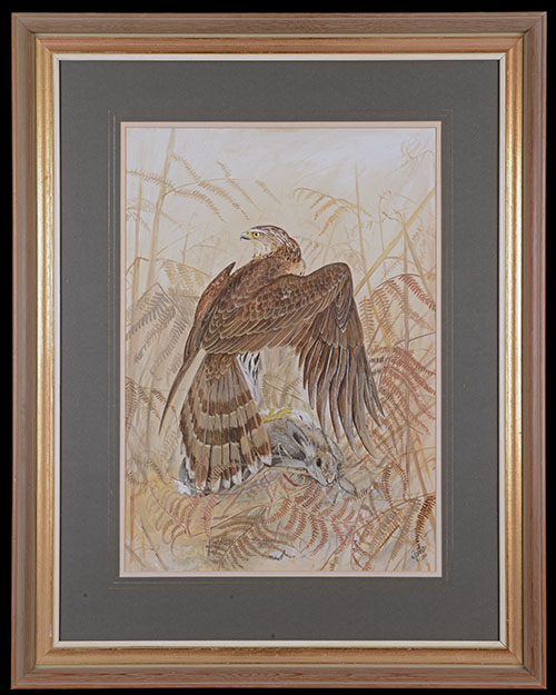 'GOSHAWK' BY K.J. WOOD signed by the artist and dated 1959, measuring approx. 31in. x 24in., mounted in a wooden frame