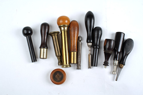 A COLLECTION OF VINTAGE TURN-SCREWS & RELOADING TOOLS, including de-capper, turnscrews, cartridge sizer
