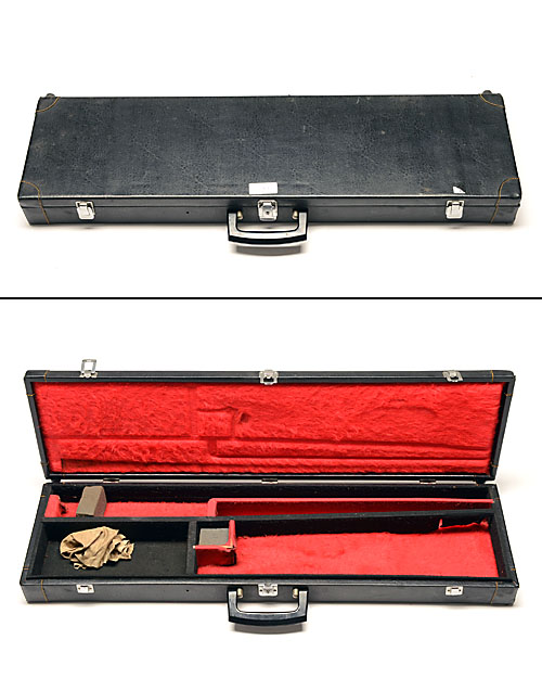 A LEATHERETTE SINGLE GUNCASE, suitable for 30in. barrels, the interior lined with red baize,