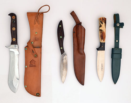 3 X HUNTING/SKINNING KNIVES, including a 'PUMA WHITE HUNTER' with sheath in makers box, together with two skinning knives