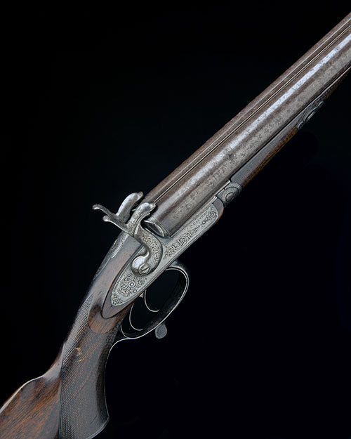 A 12-BORE PINFIRE DOUBLE-BARRELLED SPORTING-GUN, no visible serial number,