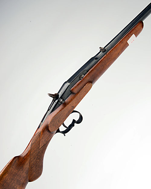 BELGIAN 9MM FLOBERT SINGLE BARRELLED FLIP-UP BREECH HAMMERGUN, nvsn, 29 1/2in. black powder only barrel, 13 3/4in. semi-pistolgrip stock, sling swivels