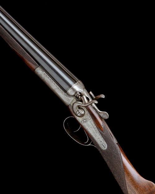 28in. nitro barrels (Birmingham proof marks for 1935), 2 1/2in. chambers, bored approx. true cyl. and 1/4 choke, back-action locks, border engraving, retaining very slight traces of colour-hardening, 14 1/2in. stock including horn buttplate, fore-end with horn finial, weight 4lb. 5oz.