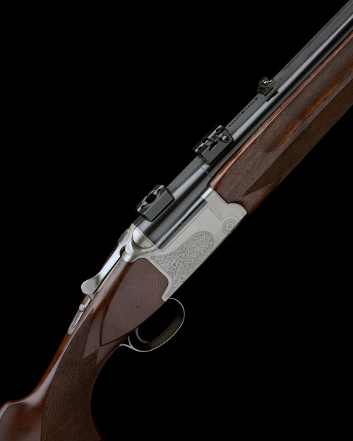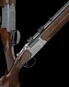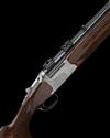 25in. nitro reproved barrels, 8mm stepped raised solid matt top-rib with folding open sights and ramp-mounted bead fore-sight, the breech end with quickly-detachable telescopic sight mount bases, 3in. shot chamber, full choke insert, hold-open toplever, automatic safety with integral barrel selector switch, border and scroll engraving, bright finish, 14 1/8in. figured pistolgrip stock with cheekpiece, monte carlo comb, pistolgrip-cap, sling eyes and including 5/8in. rubber recoil pad, weight 8lb. 10oz.