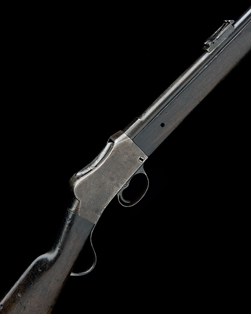 built on Francotte's patent circa 1907, with 27 1/2in. barrel, block and blade fore-sight, elevating ladder rear-sight, the top of barrel signed 'BARREL MADE BY BIRMINGHAM SMALL ARMS CO. LD. BIRMINGHAM 1907', nocksform numbered '4744' plain receiver stamped with 'FRANCOTTE'S PATENT' in a circle and 'VICTORIAN GOVERNMENT' over a Victorian crown above the number '4744' on the left hand side, 'Martini-style' underlever action, walnut straight hand butt-stock, iron heel-plate, walnut military-style three-quarter fore-end with two iron barrel-bands and an iron nose-cap, missing clearing rod, slight traces of original finish