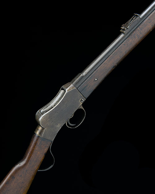 circa WWI, with 27 1/2in. barrel, block and blade fore-sight, elevating ladder rear-sight, the top of barrel signed 'W.W. GREENER, MAKER BIRMINGHAM', crossed flags trade-mark, plain receiver stamped with a 'Kangaroo' on the nocksform, 'W.W. GREENER, MAKER BIRMINGHAM on the left hand side and 'COMMONWEALTH OF AUSTRALIA' on the right, 'Martini-style' underlever action, walnut straight hand butt-stock, iron heel-plate, walnut military-style three-quarter fore-end with two iron barrel-bands and an iron nose-cap, missing clearing rod, traces of original finish