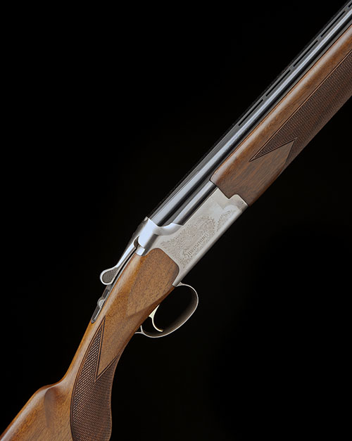 28in. nitro barrels with 6mm ventilated matt top-rib, 3in. chambers, multichokes (with spares), hold-open toplever, automatic safety with integral barrel selector switch, gold-washed single trigger, acanthus scroll engraving, matt silver finish, 14 1/4in. semi-pistolgrip stock including buttplate, weight 6lb. 9oz., in its makers universal case