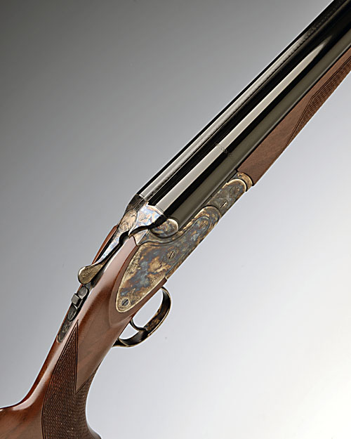 A VIRTUALLY NEW AND UNUSED HUGLU 12-BORE (3IN.) '200AC' SINGLE-TRIGGER SIDEPLATED BOXLOCK NON-EJECTOR, serial no. 8C2459, 28in. nitro barrels, 3in. chambers, multichokes (with spares), manual safety, sideclipped treble-grip action, border and partial scroll engraving, retaining virtually full original colour hardening and finish, 14 3/4in. pistolgrip stock including 3/8in. rubber recoil pad, in its makers carton