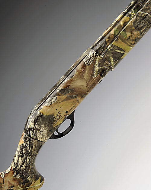 A LEFT-HANDED HATSAN 12-BORE (3IN. MAG.) 'ESCORT' SEMI-AUTO SHOTGUN, serial no. 282650, 28in. nitro barrel, 3in. chamber, multichoke (no spares), 14 1/2in. pistolgrip stock including ventilated rubber recoil pad, the whole with camouflage effect finish