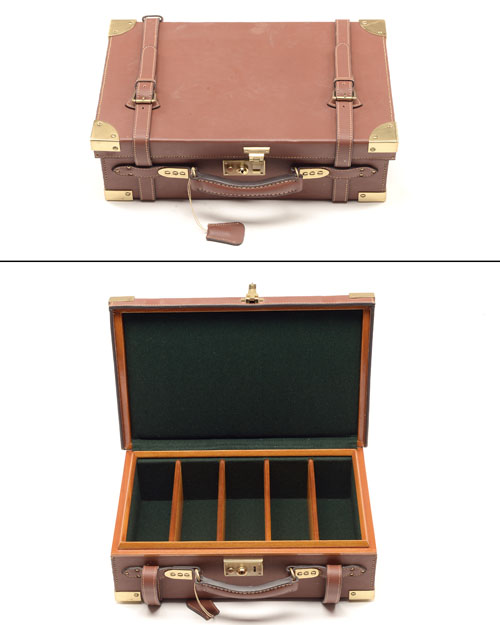 for approx. 250 cartridges, lined with green baize, four fixed dividers, no lifters, brass lock (including key)