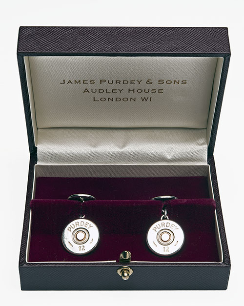 JAMES PURDEY & SONS A NEW AND UNUSED PAIR OF STIRLING SILVER CHAIN LINK CARTRIDGE CUFFLINKS,
