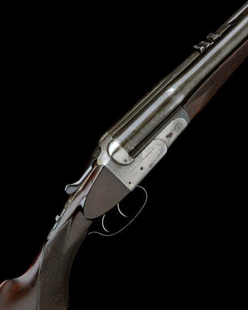 plain stepped action with removable striker discs, automatic safety, retaining traces of original colour-hardening and finish, 15in. figured pistolgrip stock including 5/8in. wooden extension, weight 8lb. 4oz. (.410 barrels) and 6lb. 8oz. (20-bore)