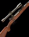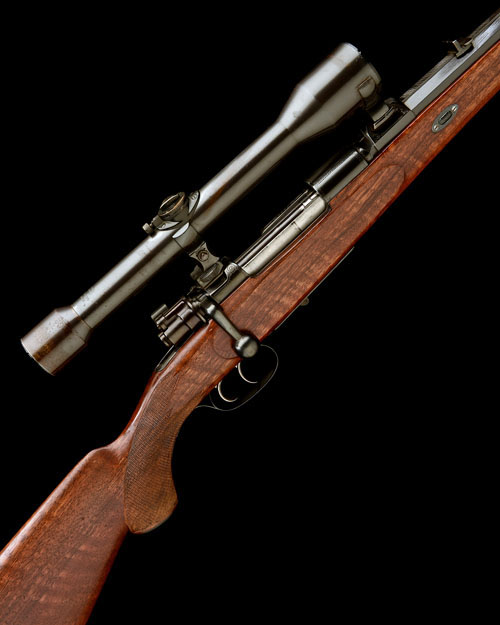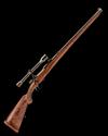 23 1/8in. nitro reproved (in 2013) octagonal to round barrel with matt rib, open sights and folding leaf sight, ramped bead fore-sight, mounted with a Carl Zeiss Zielsechs telescopic sight in quickly-detachable mounts, underside of barrel initialled 'GS' in an oval and with original Suhl proofmarks for October 1935 and serial number 4339, matt top receiver ring, receiver (with thumb cutout) with no inscription and scrolled border engraving with serial number 5269, detachable triggerplate with lever type release, border engraving, double set triggers, full length two piece pistolgrip stock with flat side panels, cheekpiece, sling swivels, engraved steel muzzle cap, 14 3/4in. pull including 3/4in. wooden extension and 7/8in. ventilated rubber recoil pad