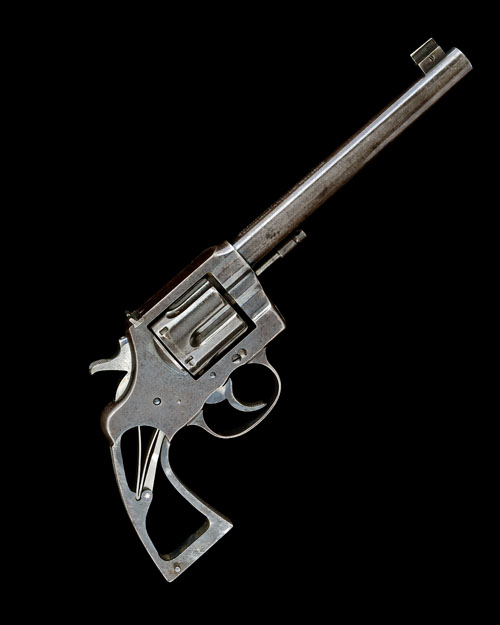* A COLT, USA SCARCE .455 (ELEY) SIX-SHOT DOUBLE-ACTION REVOLVER, MODEL 'NEW SERVICE SHOOTING MASTER TARGET', serial no. 7035, for 1902, with round 7 1/2in. barrel signed 'COLT'S PAT FIRE ARMS MFG CO HARTFORD CONN USA PAT AUGUST 5 1884 JUNE 5 1900 APRIL 9 1901', marked 'NEW SERVICE and '455 ELEY' on the left of barrel, block and blade fore-sight, drift adjustable notch rear-sight to rear of the flat top-strap, fluted swing-out cylinder, plain frame marked 'COLT'S NEW SERVICE' in a circle with the Colt trademark to the left hand side, chequered front and back-straps (grips missing), chequered trigger-blade and good traces of blued finish throughout