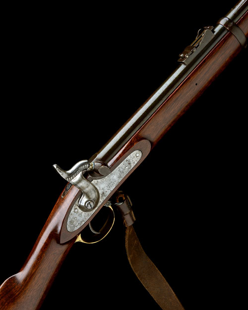 dated for 1862, with 33in. blued barrel, block and blade fore-sight, elevating ladder rear-sight graduated to 1100 yds., dated military lock signed 'ENFIELD' with a Victorian crown to the tail, walnut three-quarter stock with brass furniture, iron swivels with a leather sling and iron under-barrel ramrod