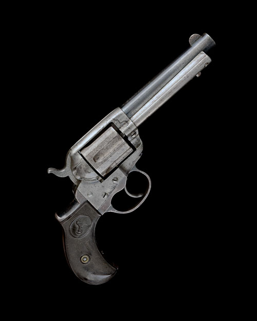 for 1891, with round 4 1/2in. barrel, the top signed 'COLTS PT FA MFG CO HARTFORD CT USA', crescent fore-sight, sighting groove to the top-strap, fluted cylinder, plain frame with loading gate to the right hand side, chequered hard-rubber birdshead grip with the Colt trademark and guarded trigger, slight traces of original finish throughout, action at fault, COMPLETE WITH a period leather holster