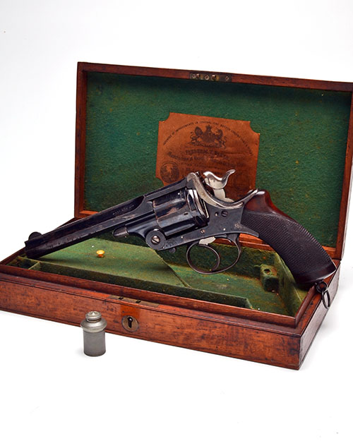 A CASED .455 SIX-SHOT DOUBLE-ACTION REVOLVER, MODEL '1879 TRANTER'S PATENT', serial no. 4661,