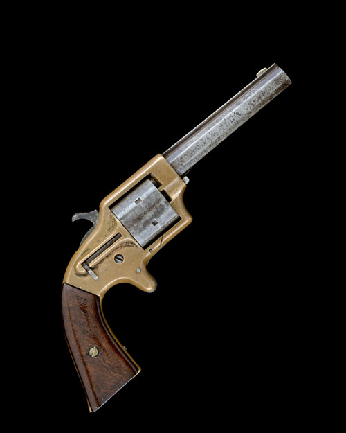 * AN EAGLE ARMS USA .30 (TEAT-FIRE) SIX-SHOT POCKET-REVOLVER, MODEL '1860', serial no. 3466, circa 1861, with iron octagonal 3 1/2in. barrel, raised sighting rib signed 'EAGLE ARMS CO NEW YORK', applied nickel fore-sight, sighting groove to the top-strap, solid bronze frame, plain iron cylinder designed to take front loading metallic cartridges, rear mounted ejector rod on right hand side of frame, smooth walnut grips and sheath trigger
