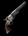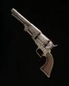for 1850, round 7 1/2in. barrel with octagonal breech-section, the top signed 'ADDRESS SAML COLT NEW-YORK CITY', nickel fore-sight, rear-sight notch to the hammer-nose, plain cylinder with traces of roll-engraved scene, squared locking notches, open iron frame marked 'COLTS PATENT US' on three lines, brass grip-straps and trigger-guard, smooth walnut one-piece grip and hinged under-barrel rammer, slight traces of finish in sheltered areas