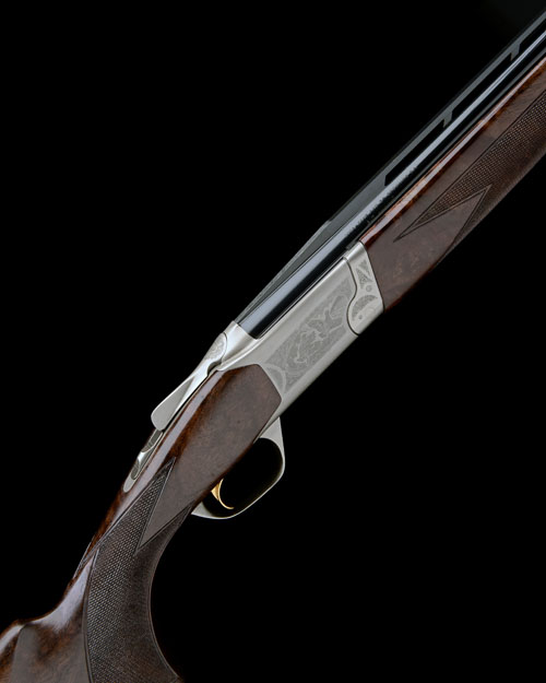 26in. nitro barrels with ventilated mid rib and 6mm raised ventilated matt top rib, 3in. chambers, multichokes (with spares), hold-open toplever, manual safety with integral barrel selector switch, gold-washed trigger, engraved with game scenes surrounded by acanthus scrollwork,14 3/4in. figured pistolgrip stock including buttplate, weight 6lb. 6oz., in its makers universal case