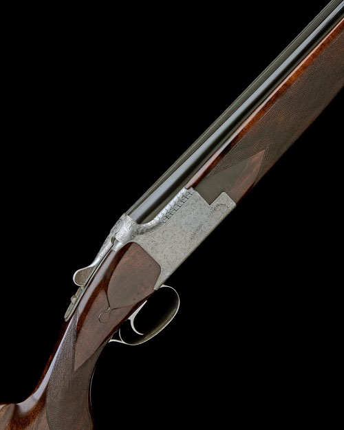 28 1/2in. nitro reproved barrels with 6mm raised top-rib, 2 3/4in. chambers, multi chokes (no spares), hold-open toplever, manual safety with integral barrel selector switch, beaded border and fine scroll engraving, bright finish overall, 14 1/2in. well-figured pistolgrip stock including 1in. rubber recoil pad, weight 7lb. 3oz.