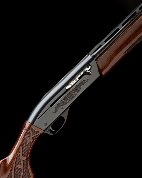 25in. nitro barrel with 7mm raised ventilated matt rib, 3in. chambers, bored approx. 1/4 choke, blacked receiver with acanthus carved in relief, the bolt carved en suite, 14 1/4in. pistolgrip stock with ornately embellished chequering, weight 7lb. 6oz.