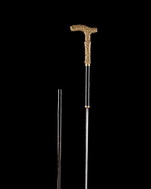 A FINE GENTLEMANS SWORD-STICK WALKING CANE WITH GILDED HILT, UNSIGNED