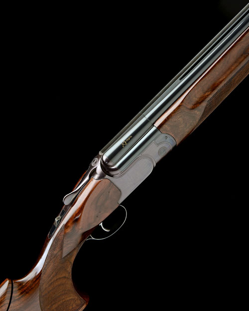 30in. nitro barrels with ventilated mid-rib and 11mm ventilated matt top-rib with intermediate bead, 2 3/4in. chambers, bored approx. full choke in both, hold-open toplever, manual safety, detachable triggerplate, blued border-engraved action gold-inlaid with the makers name and model designation, 14 3/4in. pistolgrip stock with adjustable comb, including 1in. rubber recoil pad, weight 8lb. 7oz., in its makers universal case with spare main springs and striker pins