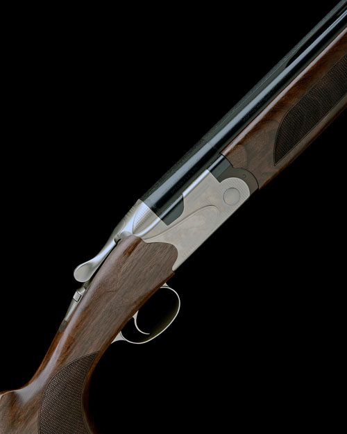 28in. nitro barrels with ventilated mid-rib and 9mm ventilated matt top-rib, 3in. chambers, multichokes (with spares), hold-open toplever, manual safety with integral barrel selector switch, engraved with geometric designs, matt silver finish, 14 3/4in. quick-release pistolgrip stock including 1in. rubber recoil pad, weight 7lb. 10oz., in its makers universal case