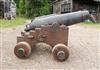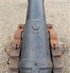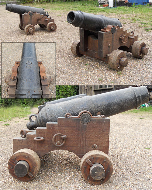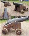 circa 1830, with 37 1/4in. barrels, bores of approximately 3 3/4in., the barrels marked with weights '3cwt 1 qtr 8lbs' and '3cwt 1qtr 17lbs' respectively, fitted on replacement oak trolleys of naval style, some external pitting to barrels