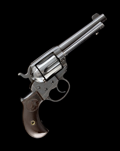 for 1897, with blued 4 1/2in. barrel signed 'COLT'S PT FA MFG CO HARTFORD, CT, USA' on two lines, crescent fore-sight, sighting groove to the top-strap, blued fluted cylinder, blued frame, blued trigger-guard and grip-straps, chequered hard-rubber birdshead grips, the whole being an older refinish