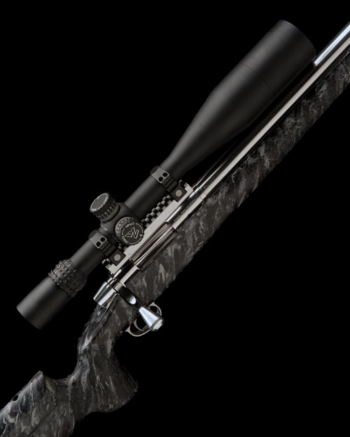 30in. unsighted nitro reproved heavy stainless barrel, stainless receiver mounted with a Nightforce NXS 12-42x56 telescopic sight on a picatinny rail, Jewell trigger, camouflage grey McMillan A5 tactical pistolgrip stock with adjustable comb and butt, textured pistolgrip with thumb rest and butt hook, broad flat fore-end, 14 3/4in. pull