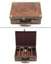 A BRASS-BOUND LEATHER CARTRIDGE MAGAZINE,