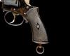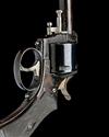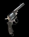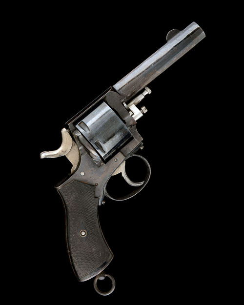 circa 1880, with blued ovoid 4 1/4in. barrel, crescent fore-sight, sighting groove to the top-strap, plain blued cylinder, solid frame with hinged loading gate, polished hammer and trigger, finely chequered walnut two-piece grips with iron butt-cap and lanyard ring, swing-out under-barrel ejector-rod and much original finish remaining throughout, trigger return spring weak