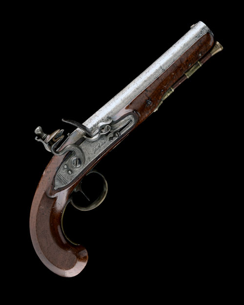 AN 11-BORE FLINTLOCK SINGLE-SHOT HOLSTER-PISTOL, no visible serial number,