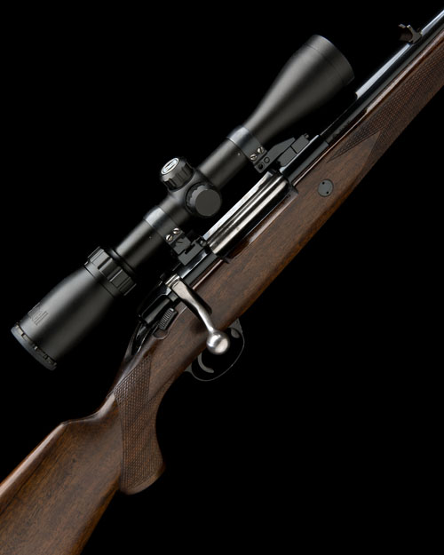 23 3/4in. nitro barrel engraved 'SHOT AND REGULATED BY HOLLAND & HOLLAND. 13. BRUTON STREET. LONDON.', with open sights and ramp-mounted bead fore-sight, receiver mounted with a Bushnell telescopic sight in quickly-detachable mounts, recoil block, hinged floorplate with push button release, triggerguard with Holland & Holland number '183', pistolgrip stock with raised comb, sling eyes, pistolgrip-cap and buttplate, 14in. pull
