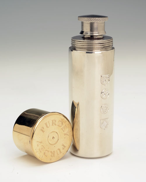 JAMES PURDEY & SONS LTD. A NEW AND UNUSED PEWTER CARTRIDGE FLASK,