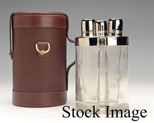 JAMES PURDEY & SONS LTD. A NEW AND UNUSED THREE FLASK LEATHER CASED TRAVEL BAR,