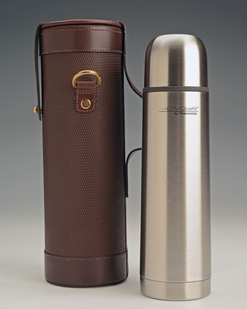 JAMES PURDEY & SONS LTD. A NEW AND UNUSED LEATHER CASED THERMOS FLASK,