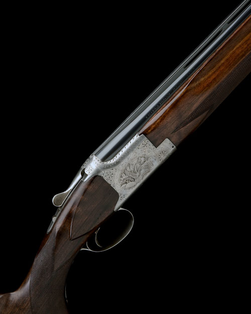27 1/2in. (70cm) nitro barrels (slightly loose) with 12mm ventilated matt top rib, semi-beavertail fore-end, 2 3/4in. chambers, open chokes, hold-open toplever, manual safety with integral barrel selector switch, game and scroll engraving, signed 'L. CORTIS', silver finish, 14 3/8in. pistolgrip stock including buttplate, weight 7lb. 3oz.