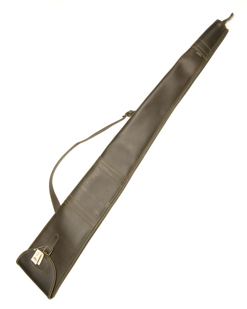 A NEW AND UNUSED GREEN LEATHER FLEECE-LINED SINGLE GUNSLIP,