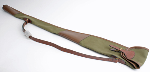 † A NEW AND UNUSED GREEN CANVAS AND LEATHER SINGLE GUNSLIP,