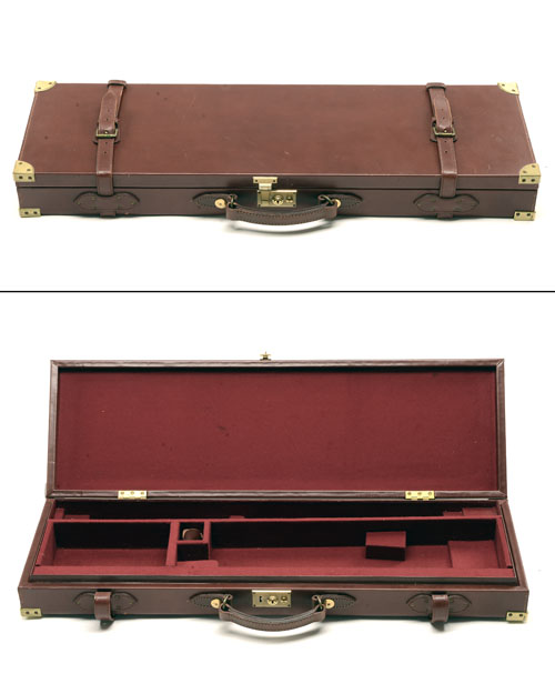 A BRASS-CORNERED SINGLE LEATHER GUNCASE,